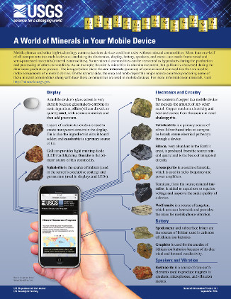 Mobile phones and other electronic devices could not exist without minerals. Most electronics include dozens of minerals. To the right (in the image - see larger version here ) are some examples of minerals in mobile phones. Other examples of minerals and metals in mobile phones include:- Gold (circuitry).